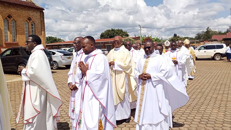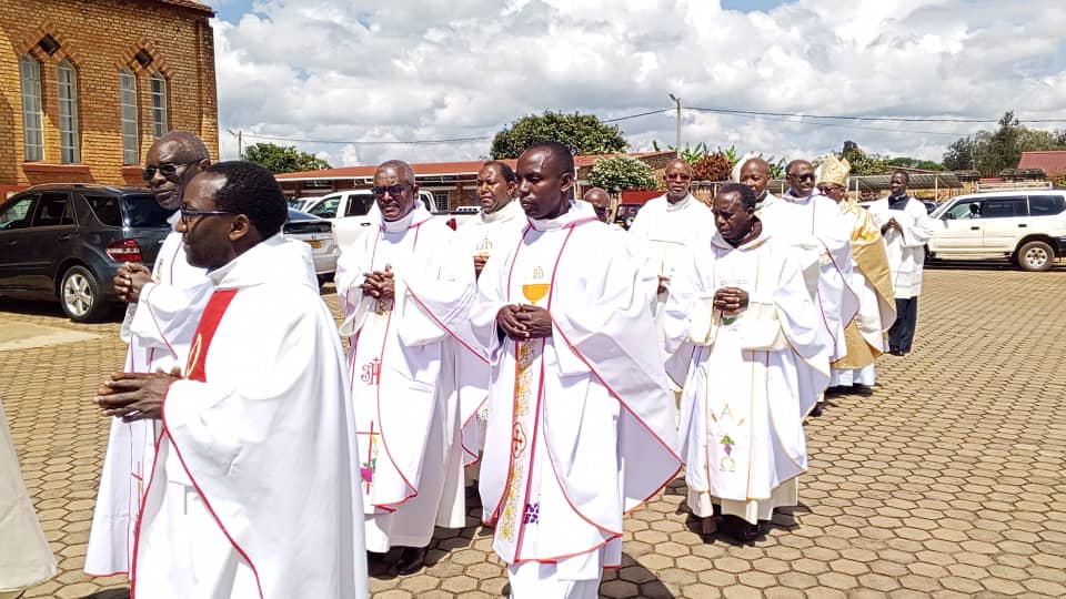 The Mass was remarkable not only for the gathering of three bishops but also for bringing together the priests of the diocese, sisters, consecrated persons, and the faithful of Butare Cathedral Parish. Among the priests present was Father Bwema Lambert, who serves as the Program Director of Radio Maria Rwanda, also attending this solemn liturgy.